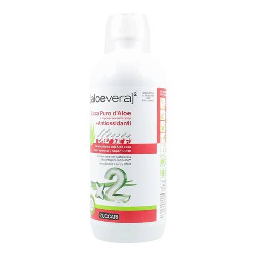 [ALOEVERA]2 Succo Puro d'Aloe a doppia concentrazione + Antiossidanti Complemento alimentare con succo d'aloe a doppia concentrazione. L'aloe contenuta svolge un'azione emolliente e lenitiva sul sistema digerente, oltre a coadiuvare le funzioni depurative dell'organismo. Contiene solo aloevera non pastorizzata, non filtrata a carboni e senza acqua aggiunta, concentrata due volte attraverso il processo reversosmose. Al succo e polpa di aloe vengono aggiunti 7 frutti per un concentrato di benessere naturale con in più la forza antiossidante di maqui, açaí, mangostano, noni e goji, oltre a camu camu per le naturali difese dell'organismo e maca per l'effetto tonico-adattogeno.