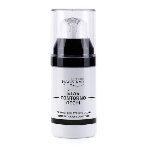 ÈTAS CONTORNO OCCHI Trattamento ferma Tempo per il contorno occhi ad intensa attività antiage, decongestionante e drenante le borse e le occhiaie del contorno occhi. Riduce visibilmente i segni del tempo grazie alla combinazione esclusiva di attivi di ultima generazione presenti nell’Ètas Time Block Factor (humulus Lupulus, Estratto di Fagus Sylvatica, Acido Fitico, Sericina e Vitamina E) che svolge una potente azione antiradicalica, decongestionante e lenitiva. La formulazione di Ètas Contorno Occhi è inoltre arricchita con Aloe Vera ed Escina per una intensa azione decongestionante.