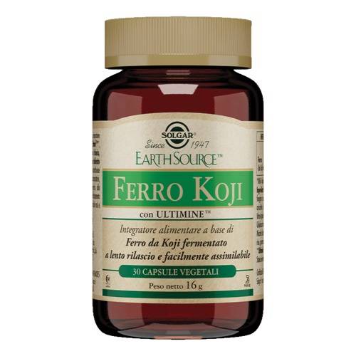 Integratore alimentare a base di Ferro Koji Ultimine, una forma di ferro a lento rilascio, facilmente assimilabile e ben tollerato dal sistema digerente.