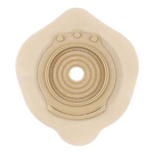 La placca è costituita da un monostrato di spessore uniforme di protettore cutaneo idrocolloidale, unito ad un anello di giunzione con la sacca in Polietilene a bassa densità (LDPE). È dotata inoltre di una pellicola in Polietilene che consente di distanziare l'anello di giunzione con la sacca dalla base della placca. Ciò permette di inserire i pollici sotto l'anello per agevolare l'unione tra sacca e placca evitando pressioni sull'addome. La flangia è dotata di una buona flessibilità e presenta nella parte inferiore una guida di sicurezza che consente un sicuro e preciso posizionamento della sacca. Il protettore cutaneo è dotato di una carta di protezione che presenta impressi i dati identificativi del prodotto e le diverse linee di ritaglio del protettore cutaneo in funzione del diametro dello stoma.