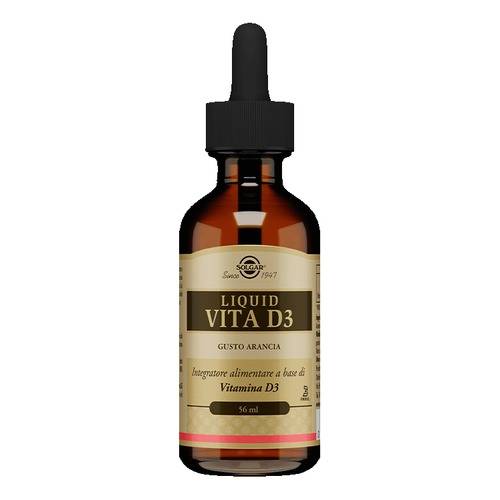 Integratore alimentare a base di vitamina D3 adatta anche ai vegetariani. La vitamina D viene prodotta a livello della cute in seguito a esposizione solare e la sua sintesi può ridursi in particolare durante i mesi invernali, quando invece l’esposizione diviene più modesta. La vitamina D contribuisce al normale assorbimento e utilizzo del calcio e del fosforo, minerali utili per la funzionalità neuromuscolare e la mineralizzazione ossea. Contribuisce quindi al mantenimento di ossa e denti normali. La vitamina D inoltre contribuisce alla normale funzione del sistema immunitario e sostiene la regolare funzionalità muscolare. LIQUID VITA D3 è un integratore alimentare contenente Vitamina D3 liquida al gusto d’arancia. La pratica confezione in gocce permette di scegliere la quantità di vitamina D ideale per ogni esigenza. Si consiglia di assumere la vitamina D ai pasti aggiungendo le gocce a un poco di latte, yogurt o ad un pezzo di pane.