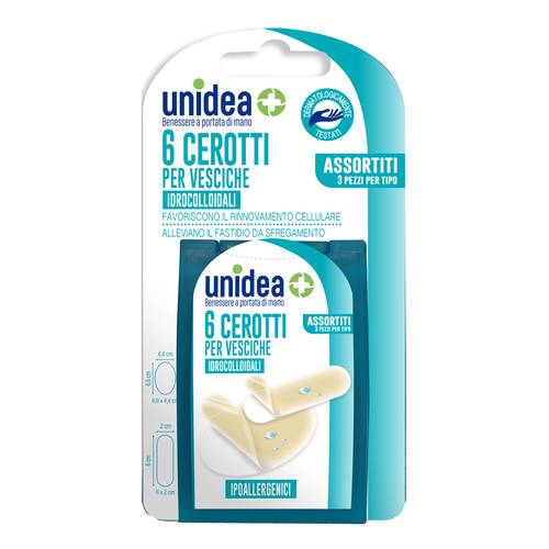 Cerotti idrocolloidali per vesciche, particolarmente indicati per la protezione di vesciche e abrasioni date da strofinamento o leggere scottature, inoltre favoriscono il rinnovamento cellulare e il processo di cicatrizzazione. Sono contenuti in una scatolina in plastica richiudibile per preservarne la conservazione.