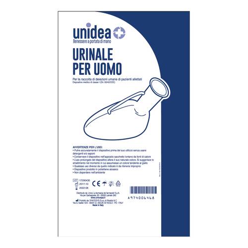 Urinale per Uomo Unidea, graduato, in polietilene neutro. Confezionato singolarmente in sacchettino.
